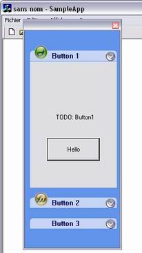 In the CMainFrame::OnCreate() method, create the CDialog corresponding to the panels of the collapsible button :