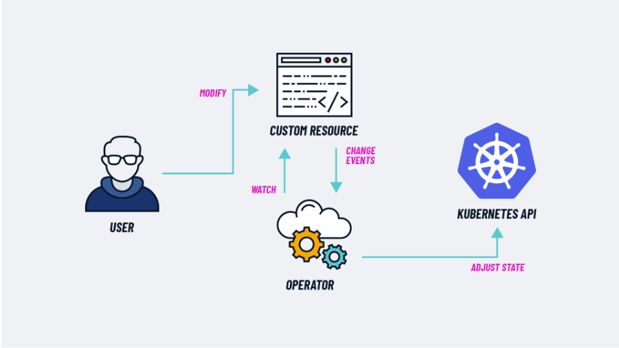 1分钟了解 Kubernetes王牌Operator Operator是一种自定义控制器,基于Kubernetes API和自定义资源定义(CRD)来实现对特定应用或服务的自动化管理。它通过扩展Kubernetes控制平面,为特定应用或服务提供了自定义的管理逻辑和行为。Operator通过监视和响应自定义资源对象的状态变化,自动化地执行必要的操作,以确保应用或服务的正确部署、运行和维护。举个例子,运维人员需要部署一套Redis集群,需要正确部署、配置相关参数、启动运行、出现宕机需要重新拉取等工作。