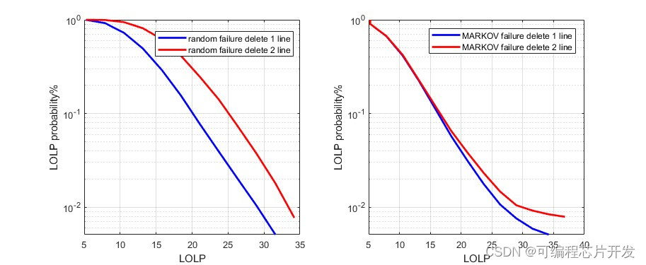 概率法常用的可靠性指标有:电力不足概率(Loss of Load Probability, LOLP)和期望缺供电量(Expected Demand Not Served, EDNS)是评估电力系统可靠性的两个重要指标。通过随机法和蒙特卡洛法分别对这两个指标进行仿真分析。