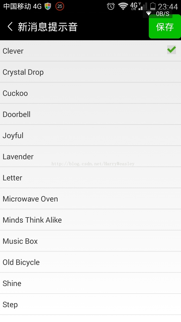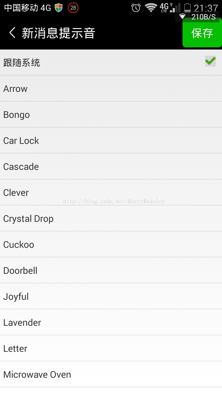 最近公司在做一个项目,有一个切换消息提示音的功能,可以切换本应用收到消息的提示音,而不影响系统提示音。我就按照微信的那个样式进行了编程,最终得到想要的效果。