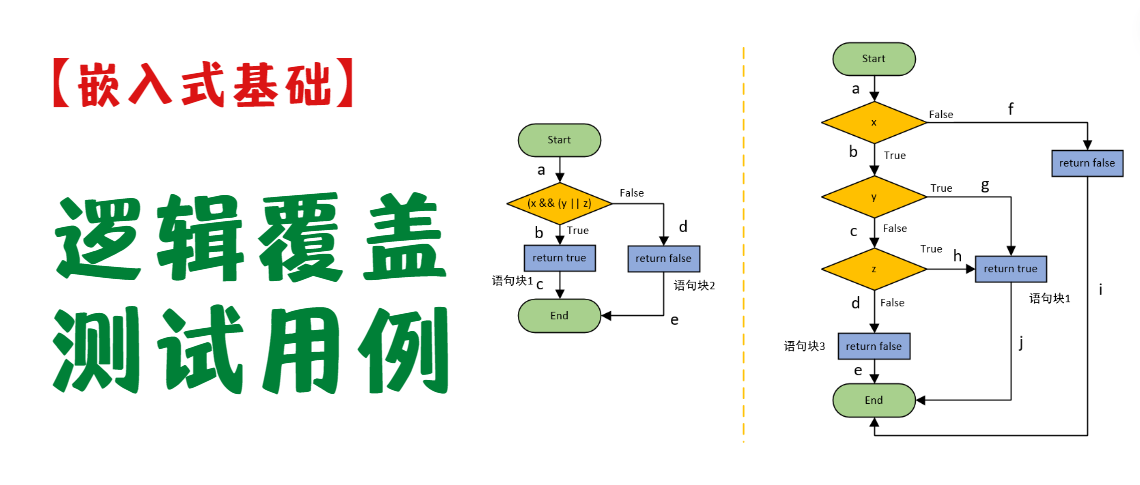 嵌入式基础知识-逻辑覆盖测试用例设计 本篇介绍了软件测试中,白盒测试中逻辑覆盖的各种实例情况,包括语句覆盖SC、判定覆盖DC、条件覆盖CC、条件判定覆盖C/DC、条件组合覆盖MCC、路径覆盖PC、修正的条件判定覆盖MC/DC的实例。