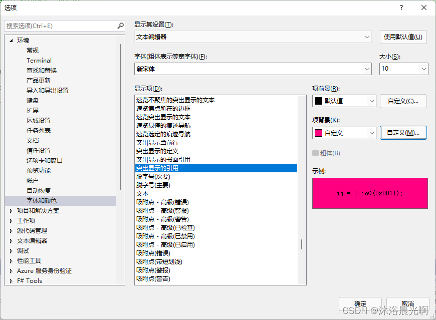 我们可以通过修改字体设置(环境-字体和颜色-突出显示的引用-项背景)来调整这个引用提醒,让它更醒目些。如下图,给它来个粉红色