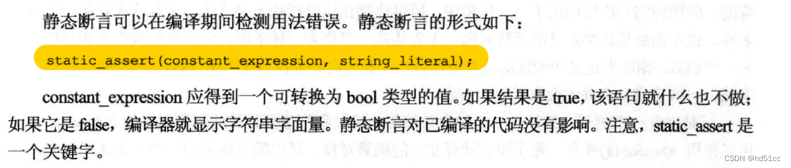可以转换为布尔值的整型常量表达式。 如果计算出的表达式为零 (false),则显示 string-literal 参数,并且编译失败,并出现错误。 如果表达式不为零 (true),则 static_assert 声明无效。