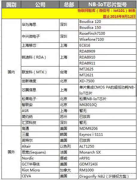 八.NB-IoT芯片/模组厂商,生态圈