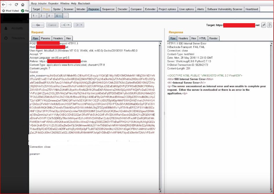 我尝试着用一些其他的payload替换了params参数的值,都是报错,看起来真就没啥问题,我都准备不看这个点了,但是,当我用空参数的时候,服务器返回了500错误
