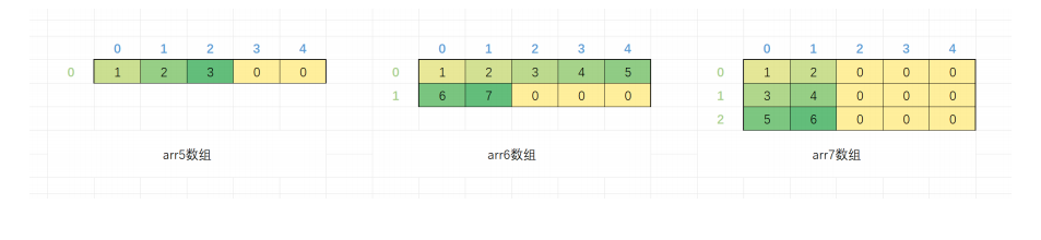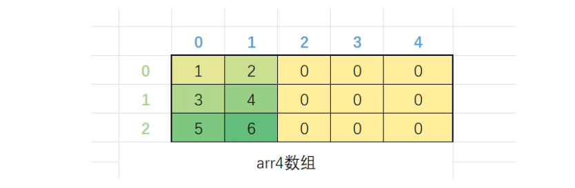 int arr7[][5] = { {1,2},{3,4},{5,6} };
