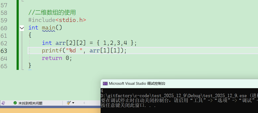 printf("%d ", arr[i][j]);//通过行号和列号唯一确定二维数组中的一个元素
