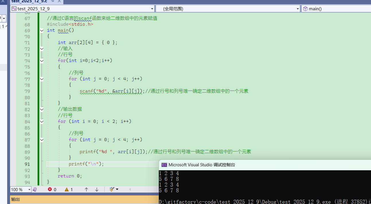 scanf("%d", &arr[i][j]);//通过行号和列号唯一确定二维数组中的一个元素