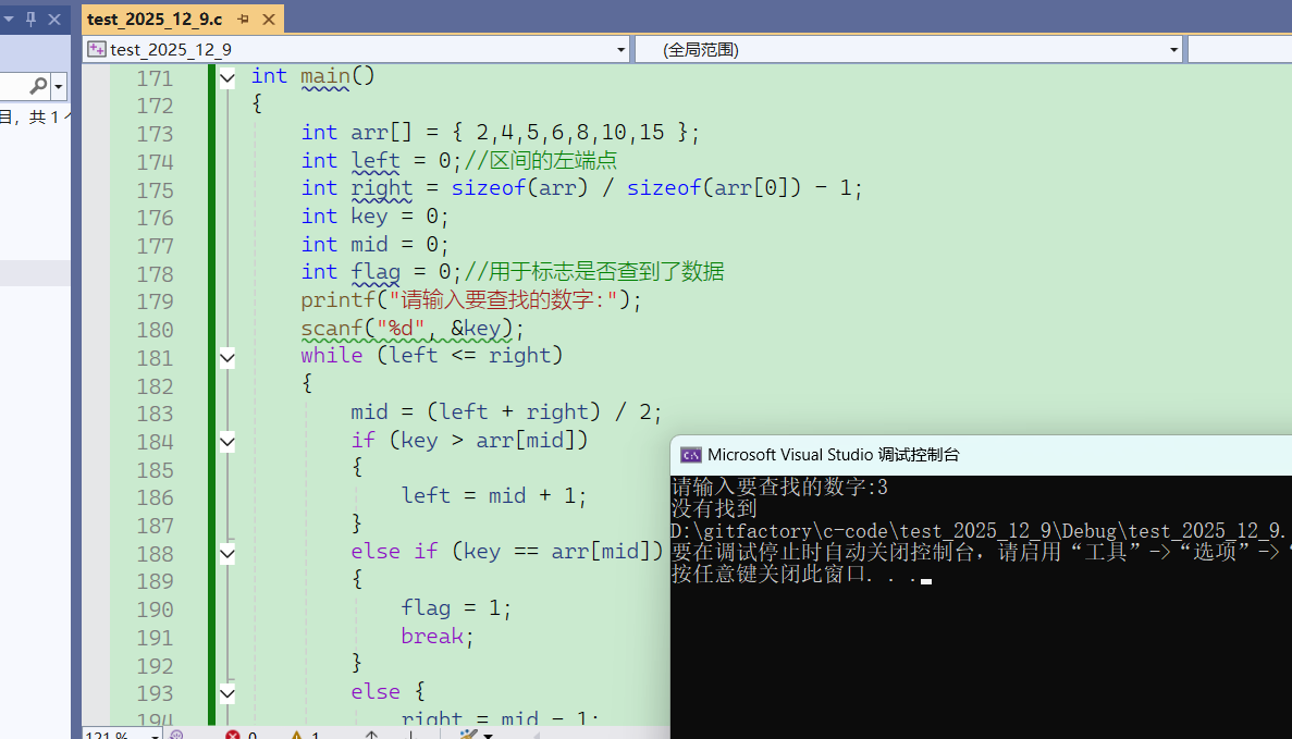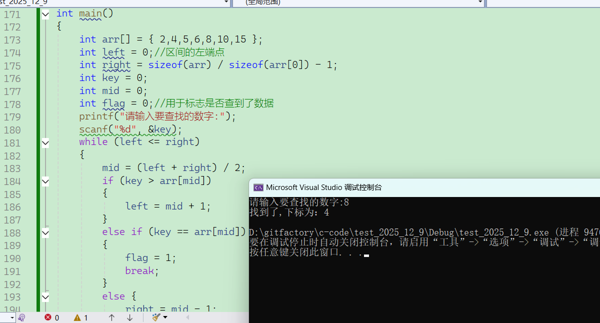 printf("找到了,下标为:%d\n", mid);