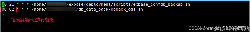 使用linux中的Crontab 工具定时执行数据库备份脚本。