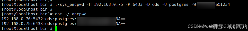 在 KingbaseES 中使用密码配置工具 sys_encpwd 来设置口令密文。将用户的密码以密文形式存在.encpwd 文件中。
