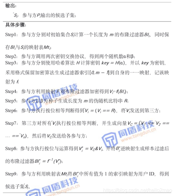 同盾科技在其《知识联邦数据安全交换(FLEX)白皮书》中给出了一个基于布隆过滤器的PSI方案: