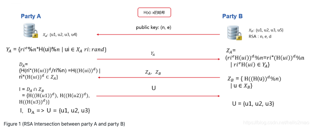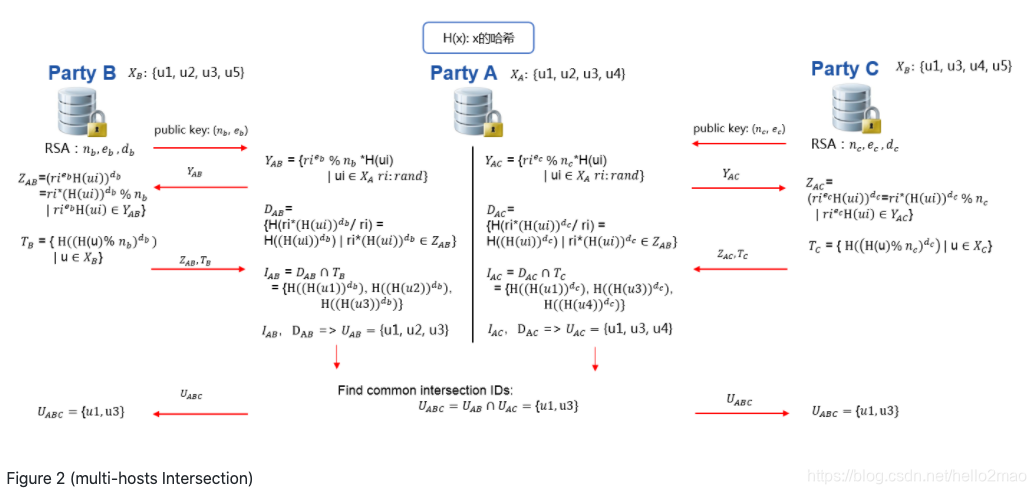 PSI允许持有各自集合的多方来共同计算集合的交集,而计算的最后,各参与方只能得到正确的交集,而不会得到交集以外另一方集合中的任何信息。