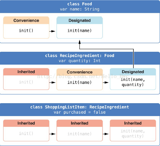 - 子类ShoppingListItem没有定义构造器,所以继承了基类RecipeIngredient的所有构造器。Swift入门系列15-继承中的构造规则(难点)