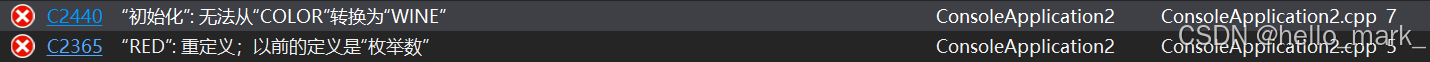WINE wine = RED; // 报错,编译器分不清RED是Color 还是 WINE