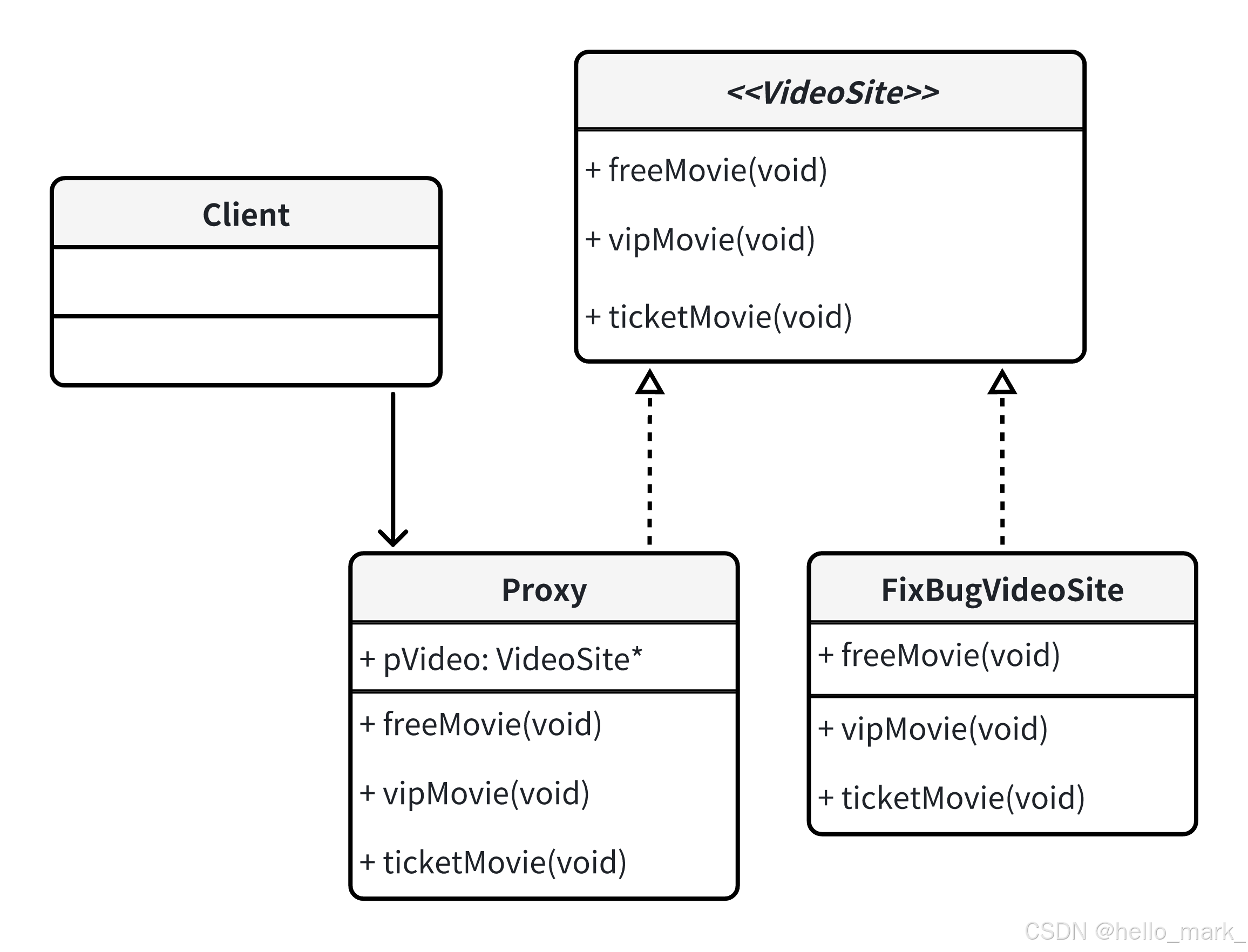 pVideo->freeMovie(); // 通过代理对象的freeMovie, 来访问真正委托类对象的freeMoive