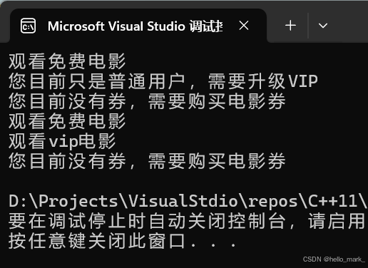 cout << "您目前只是普通用户,需要升级VIP" << endl;