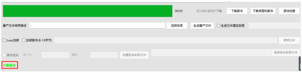然后点击下载底层和脚本按钮,就可以将项目文件烧录到Air780EPM核心版本中。