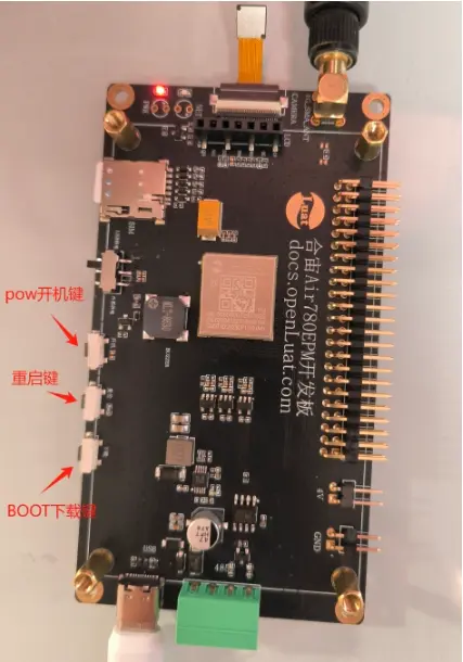 1.当Air780EPM开发板没有开机时,按着BOOT键然后长按POW开机。