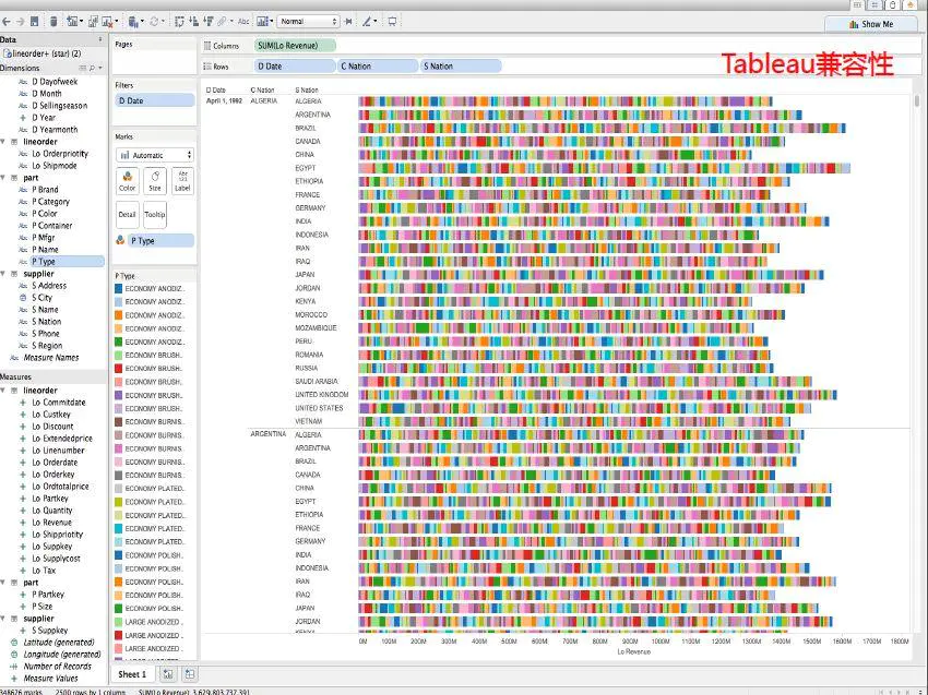 - Doris 的前端展示,可以使用 MySQL 专属展示器 Tableu。下图就是使用 Tableu 将 Doris 数据可视化的一个范例。