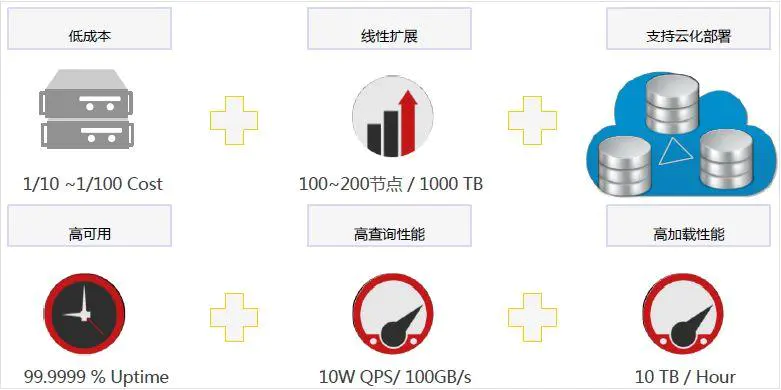 Doris 的目标是:实现低成本(主要针对商业产品),可线性扩展,支持云化部署,高可用,高查询性能,高加载性能。