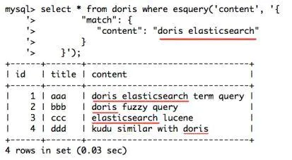 3、Doris 在 ES 开发的过程中,分别借鉴 ES 和 Palo 的长处,支持了 Elasticsearch 多表 Join 操作,同时引入 Elasticsearch 的语义搜索功能,扩充了 Doris 的查询能力。