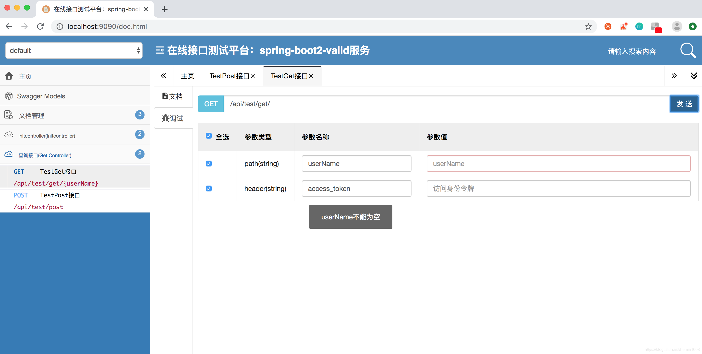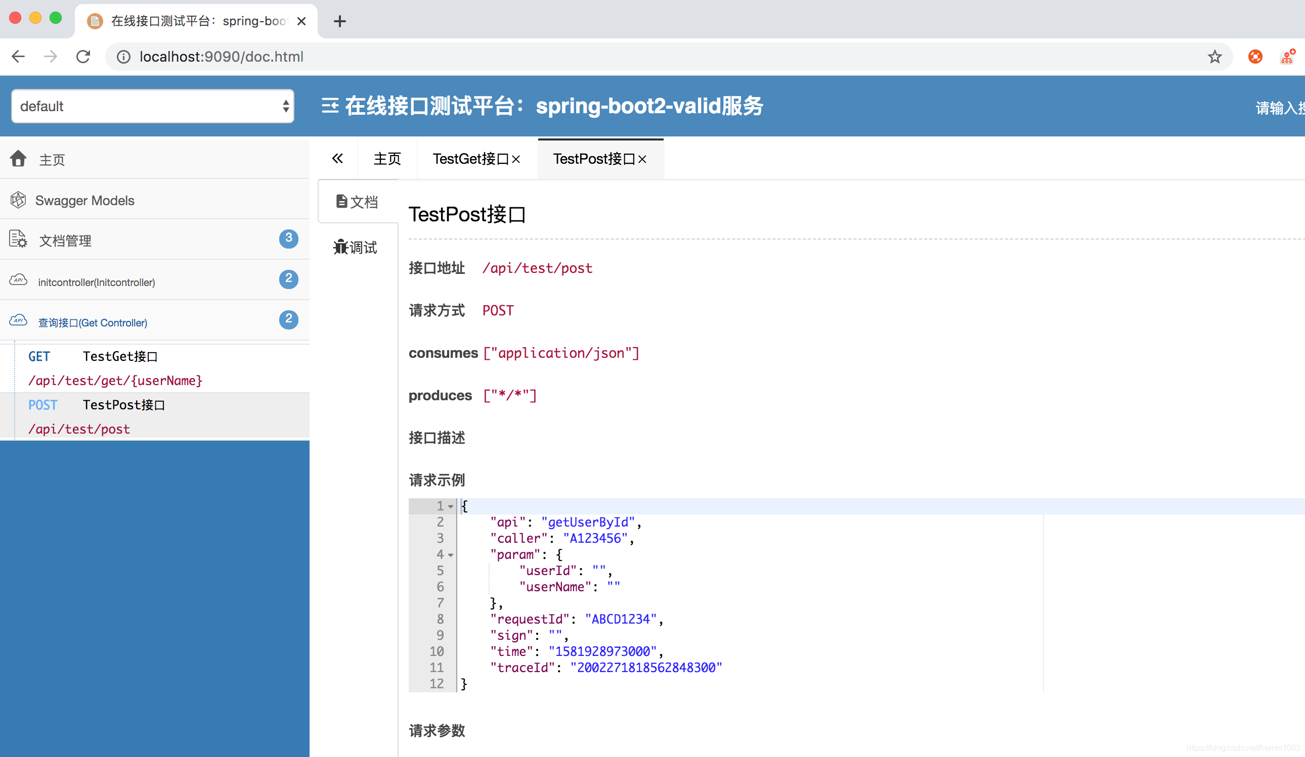 1. 启动后,访问地址:http://localhost:9090/doc.html (已集成了swagger2框架,Swagger集成用法教程)