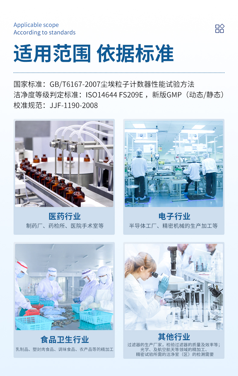 尘埃粒子计数器的应用已渗透到所有对洁净有严苛要求的领域。