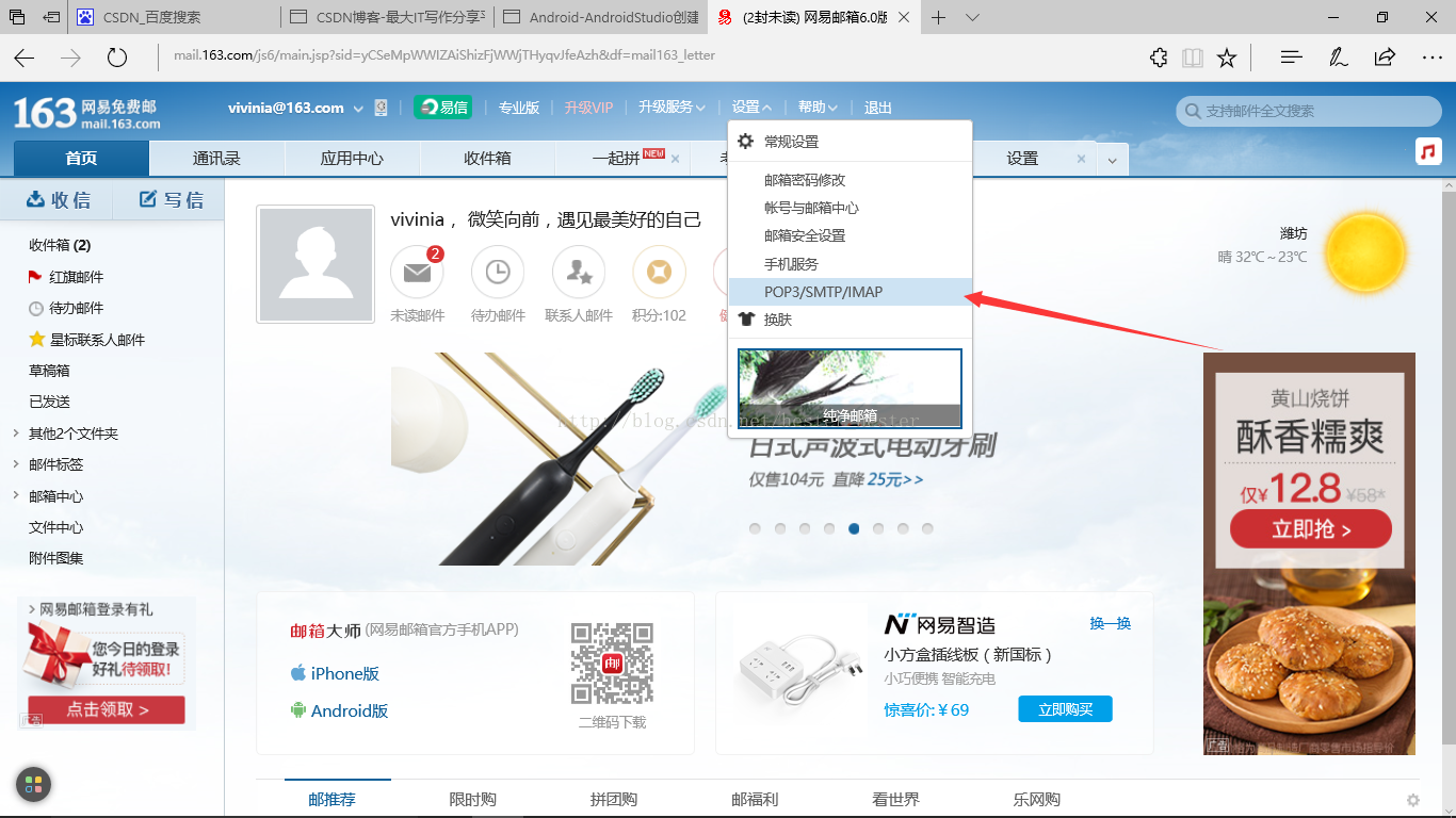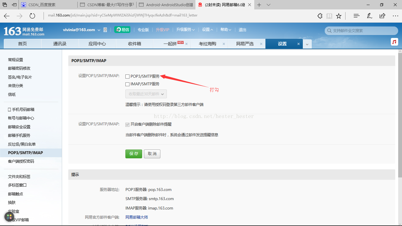 1.首先需要注册一个邮箱(作为一个专门发验证码的邮箱,我是新注册的),然后打开网页版中POP3那一栏;
