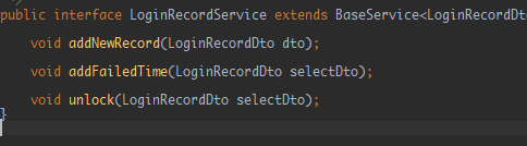 然后进入了一下午的DeBug,只要执行完了service的方法就会报错.尝试过try,catch包裹整个serviceImpl,并没有捕获到任何异常.找了我的导师和另一个大佬帮我DeBug,改了很久都没想到为什么会出现这个NullPointException,最后大佬试了下改了我的方法名.将void addFailedTime(LoginRecordDto selectDto);改为了void updateFailedTime(LoginRecordDto selectDto);竟然成功不报错了.他对我说可能是切面的问题,重复切了.贴下方法,和几个切点.