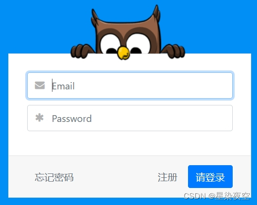 前端猫头鹰网站登陆页面 前端猫头鹰网站登录页面1.正常情况下猫头鹰的眼睛会睁开,在输入密码的时候猫头鹰的眼睛会用翅膀捂住2.有 忘记密码 注册 登录 按钮3.如果没有输入密码,点击登录会出现 请填写此栏4.输入 Email Password后,点击登录会实现跳转页面