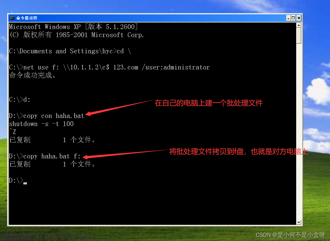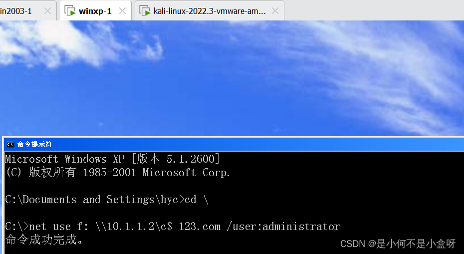 空链接ipc$哪个盘都不是,而是整台电脑。所以现在我们可以用以前学过的所有命令对他做操作了。