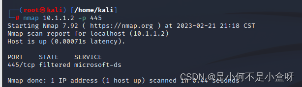因为我们这次是用445端口来攻击服务器,所以就用nmap来扫描端口搜集信息,扫出来的信息与win2003吻合。
