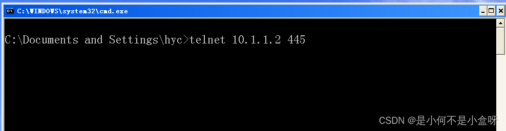如果回车之后出现这个黑框,是说明该端口445已经开启了的: