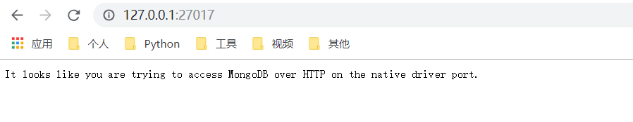 需要注意的是:如果你没有提前创建db文件夹,是无法启动成功的。运行成功之后,我们打开浏览器,输入127.0.0.1:27017,看到如下图,就说明MongoDB服务已经成功启动了。
