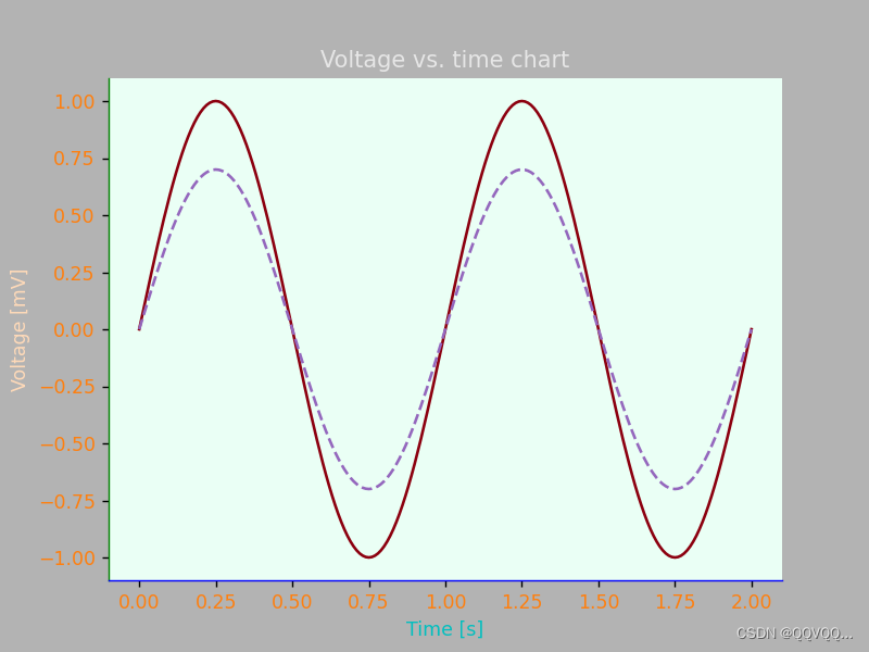 ax.set_title('Voltage vs. time chart', color='0.9')