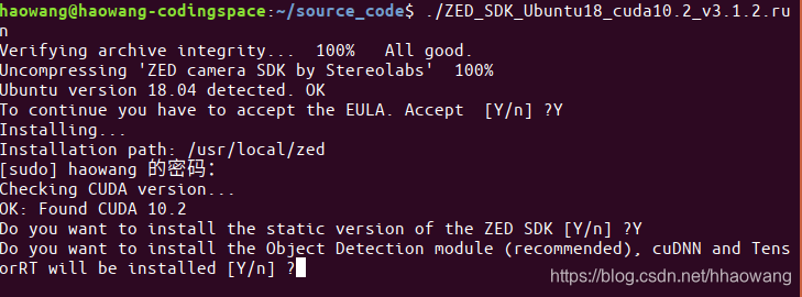 chmod +x ZED_SDK_Ubuntu18_cuda10.2_v3.1.2.run