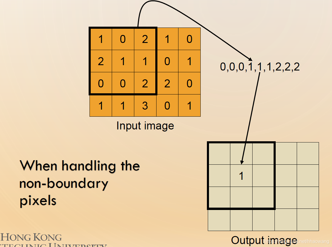 - 基本思路:对图像上的每一个像素值,我们将它和它领域内的像素值进行从小到大排序sort(),取统计来的观察窗内的像素值的中位数给当前像素赋值。