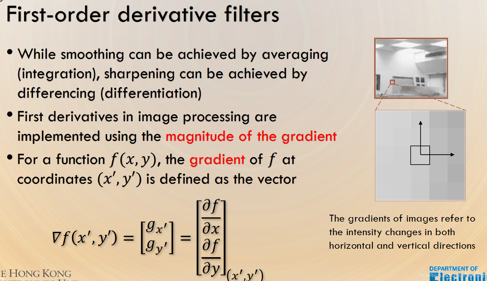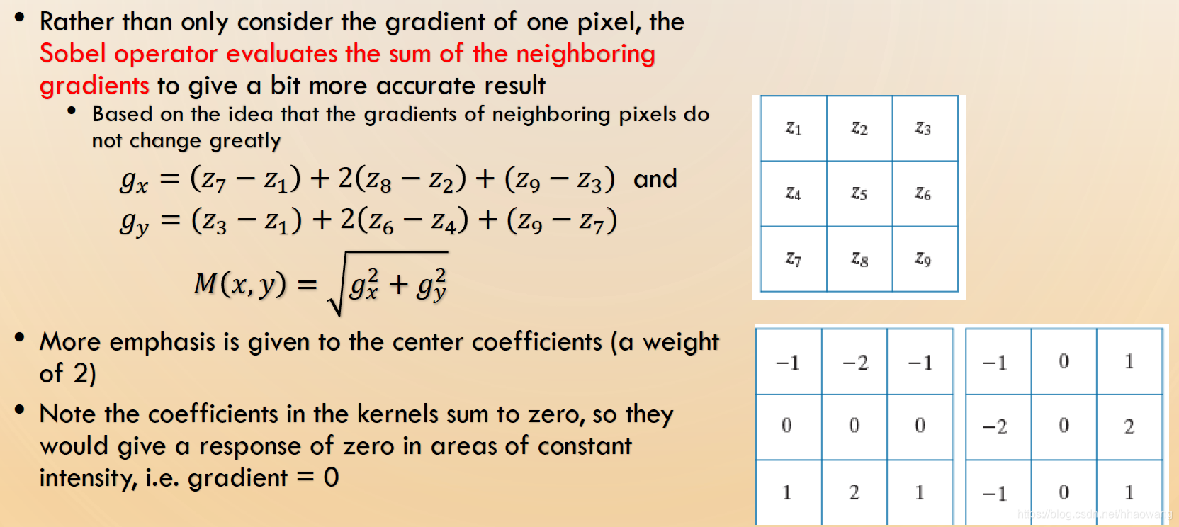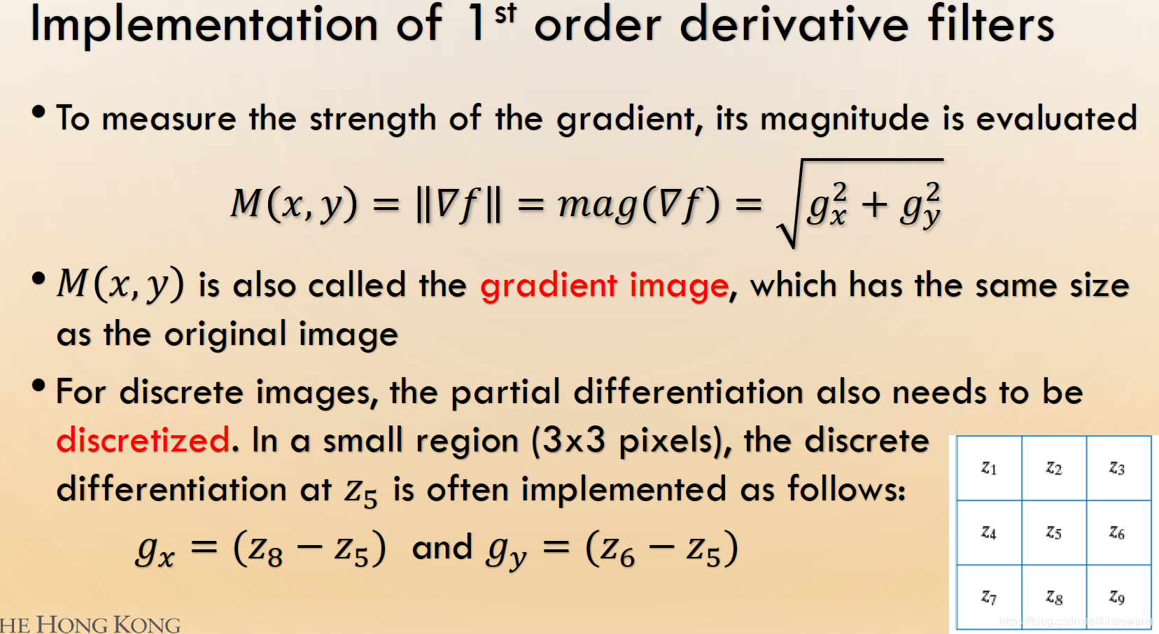 平滑滤波器可以看做是滤波核与像素值得卷积平均,如果要将图像锐化,相反地,应当对图像像素做微分操作,而图像像素值是离散的,微分用差分代替。
