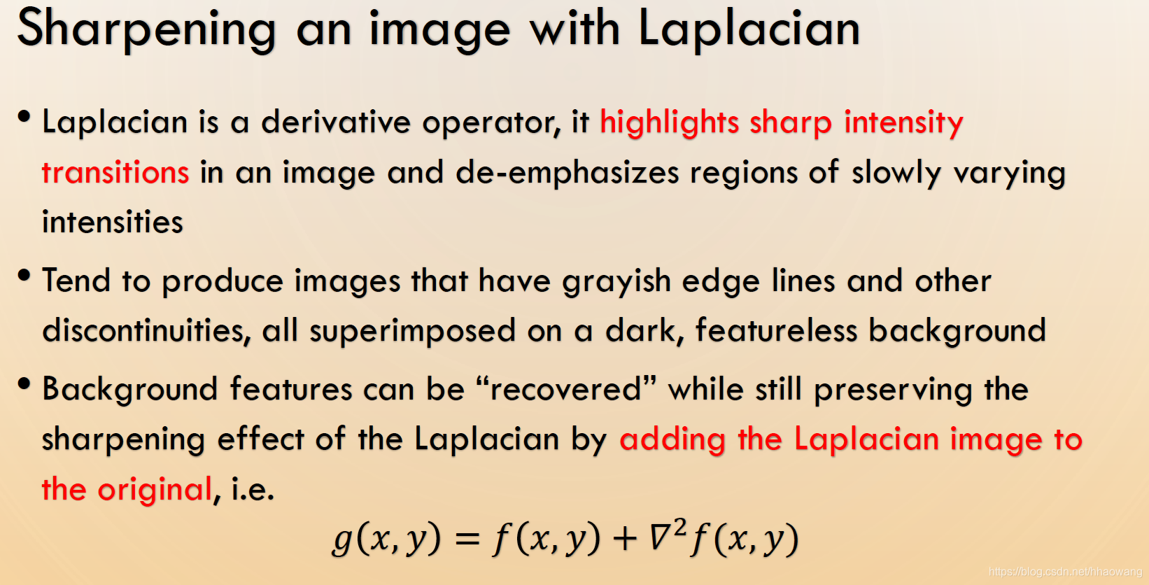 - 拉普拉斯算子是一种二阶微分算子,它用于突显图像中的锐化梯度过渡部分。