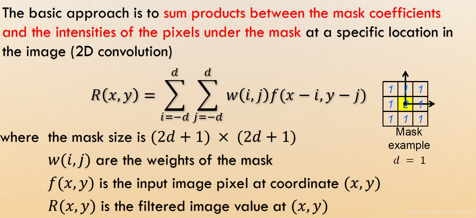 空间域滤波操作是图像增强的常用方法,即选用不同形式的滤波器(filter/ kernel)来对图像做二维卷积操作。空间域卷积表现为图像像素值对滤波器的冲激响应结果。