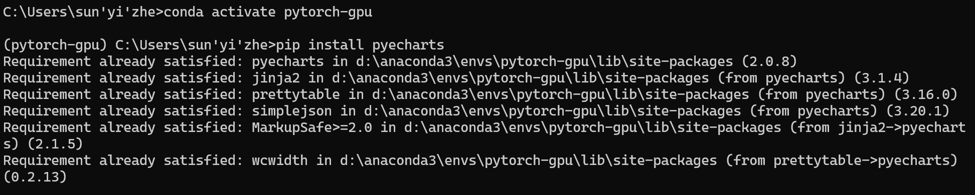 2. 打开cmd,输入pip install pyecharts,安装pyecharts包。