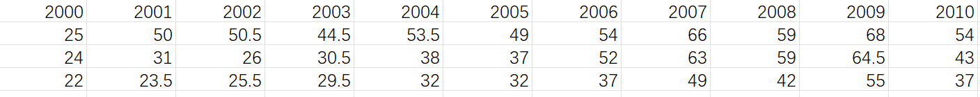 years = next(reader)[1:]  # 跳过第一列