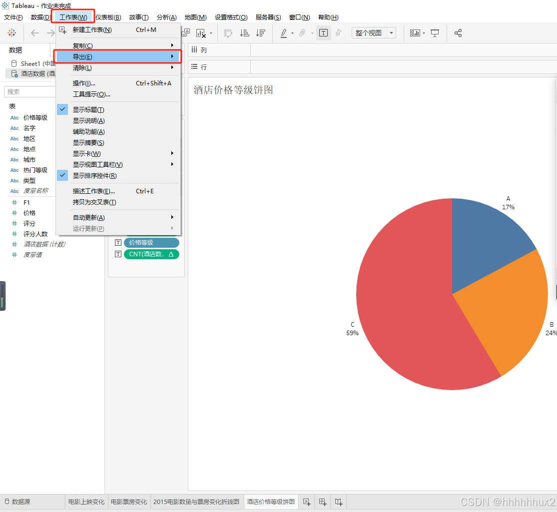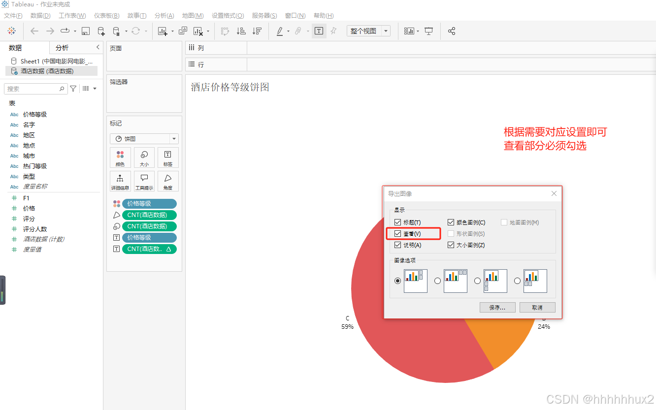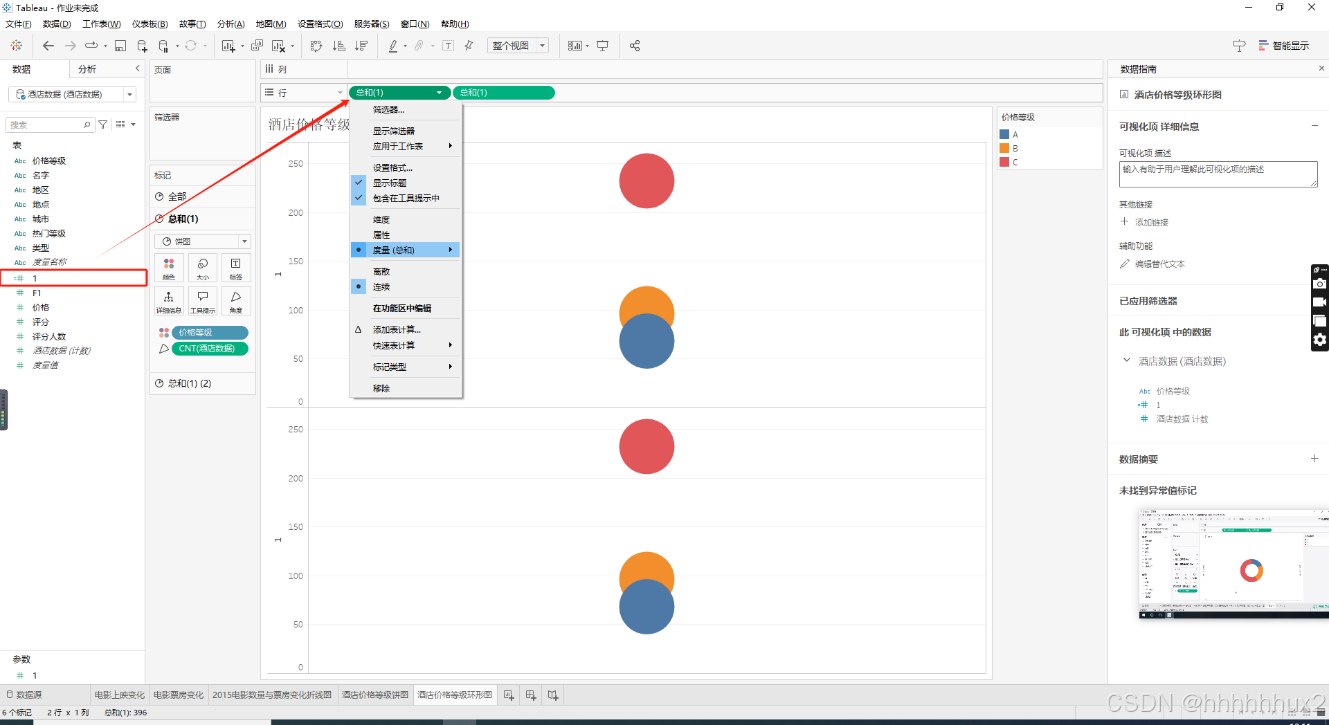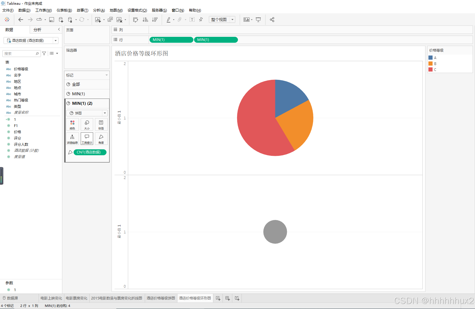 tableau不具备自动生成环形图的能力,所以需要用两个饼图,通过调整饼图的颜色来完成环形图的设置