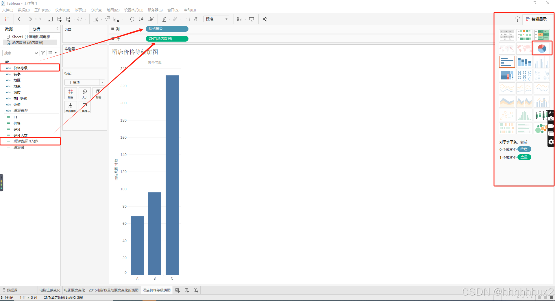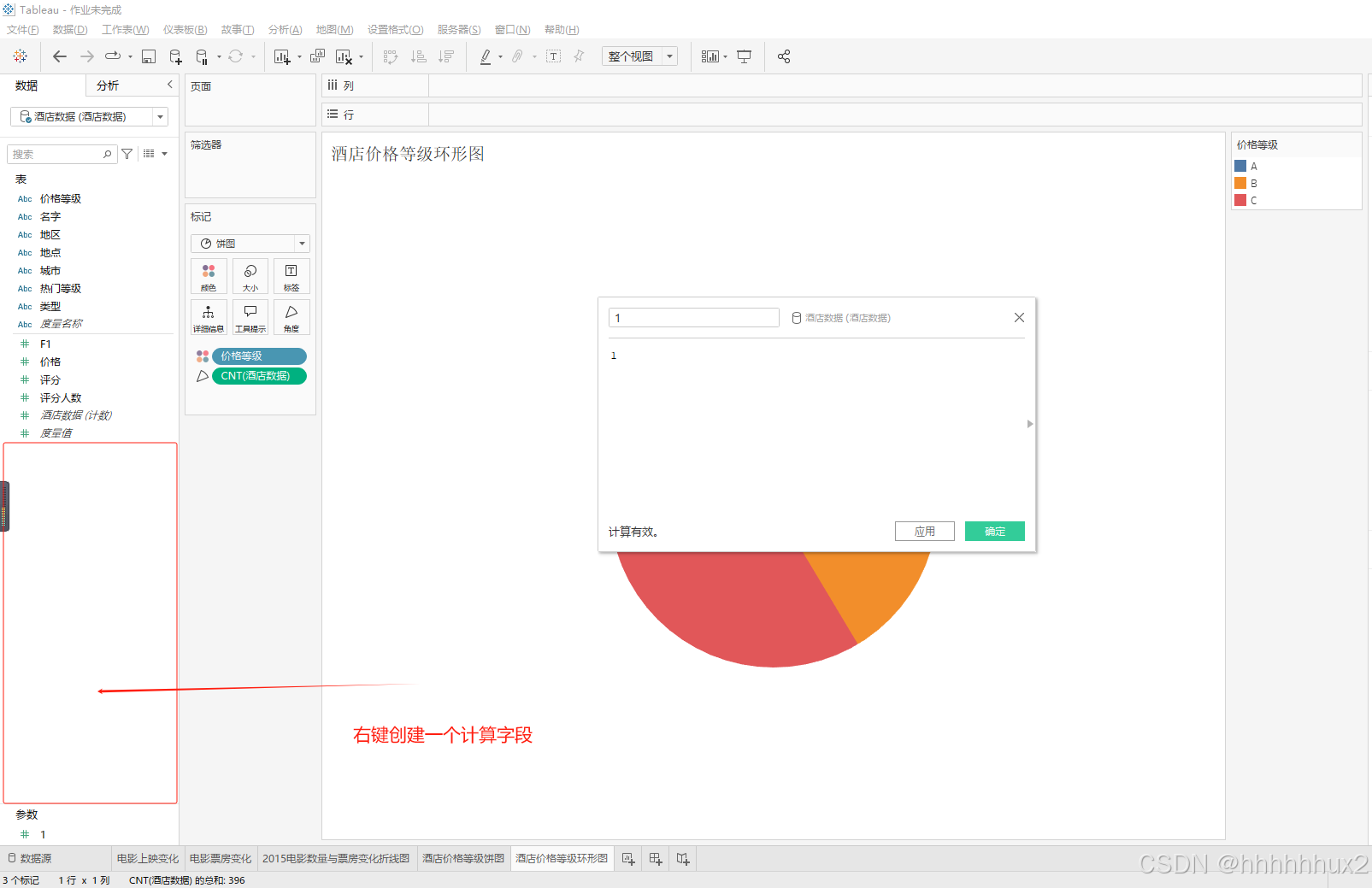 创建的计算字段1,拖拽至行,按住ctrl同时向行方向拖拽