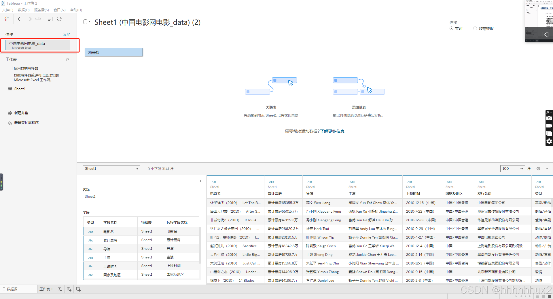 数据导入后,需要对数据简单做处理。将电影名称,票房,上映时间,主演,导演等信息,做拆分,同时隐藏原数据。