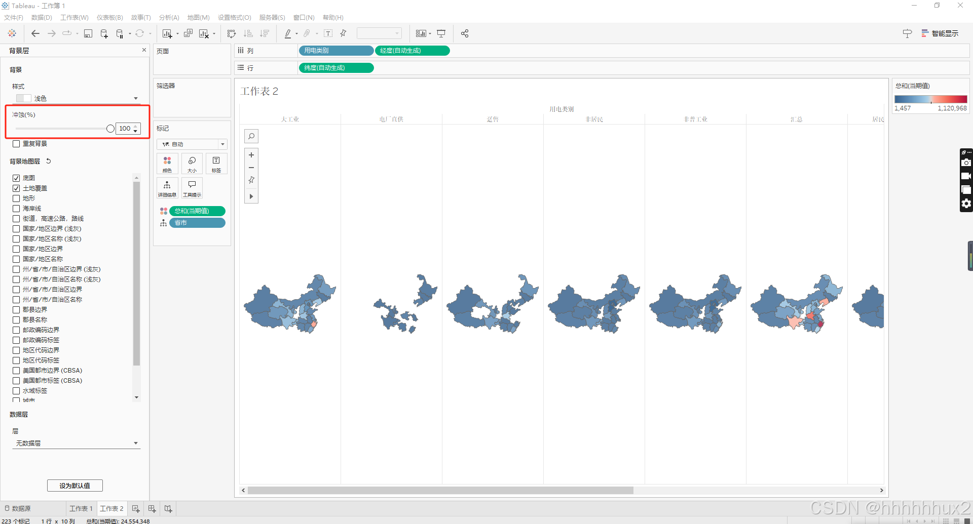 地图,地图层设置,冲蚀调整为100%,并且省市地区名字不显示