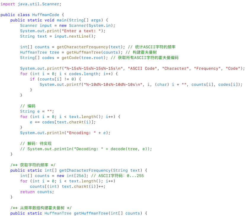 ·哈夫曼编码通过对出现频率较高的字符使用更少的比特进行编码,从而实现数据压缩。Huffman coding compresses data by using fewer bits to encode more frequently occurring characters is encoded to is decoded to