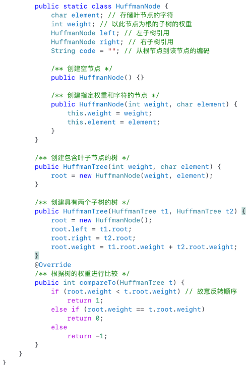 - 某个字符的编码由从根节点到该叶子节点路径上的边的值组成。The code for a character consists of the edge values in the path from the root to the leaf