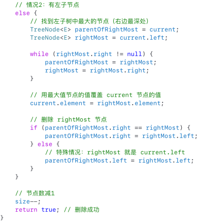 ·将rightMost的值复制到current(此时我们要删除的值已经被覆盖,相当于删除current)